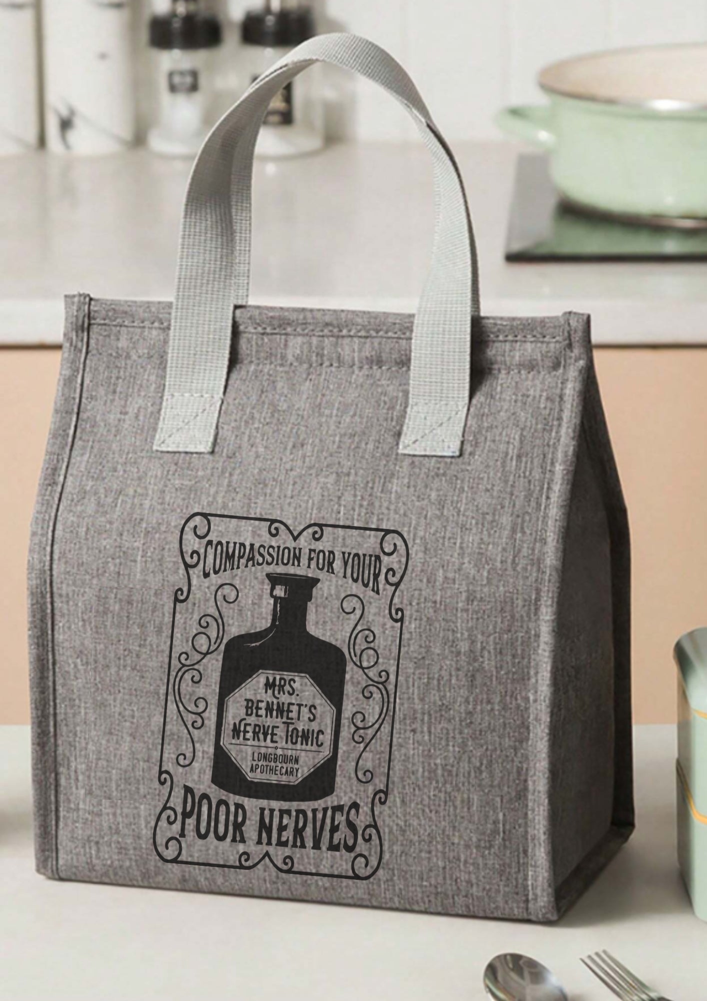 Enjoy your lunch in literary style with our insulated lunch bag, designed for book lovers who appreciate both functionality and charm. Crafted from durable grey nylon (100% polyester), this lightweight yet sturdy bag keeps your meals fresh while adding a touch of bookish flair with its beautifully sublimated print.